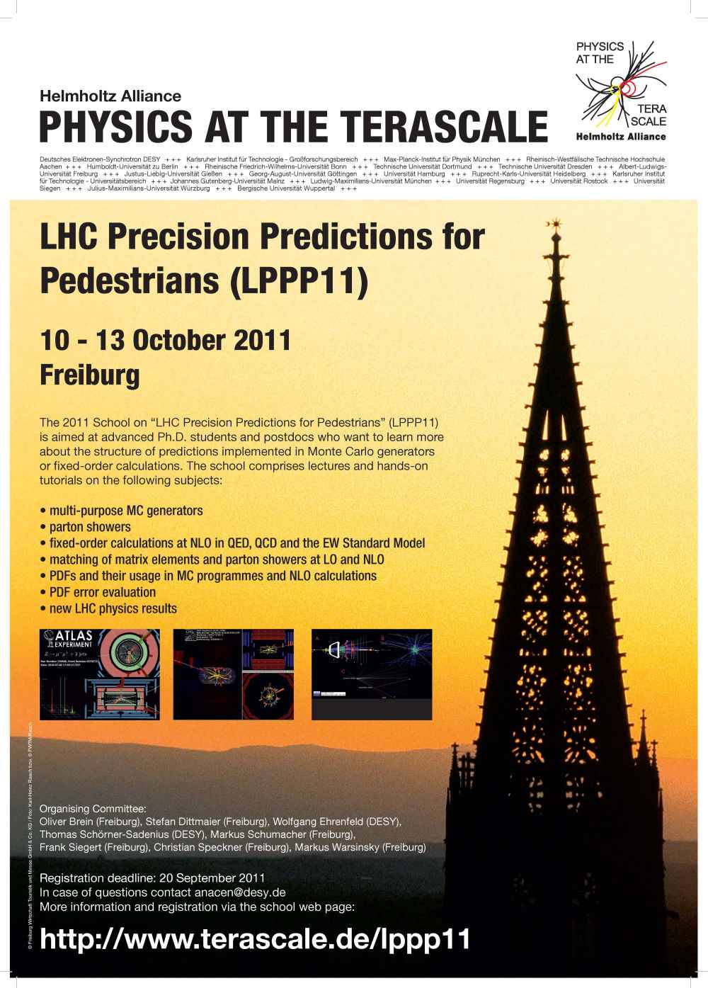 The 2011 School on "LHC Precision Predictions for Pedestrians" (LPPP11) is aimed at advanced Ph.D. students and young postdocs who want to learn more about the structure of predictions implemented in Monte Carlo generators or fixed-order calculations. The school - which takes place from 10 to 14 October 2011 in Freiburg - comprises lectures and hands-on tutorials on the following subjects: